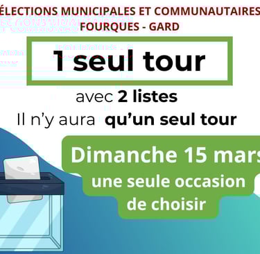 📢𝐃𝐈𝐌𝐀𝐍𝐂𝐇𝐄 𝟏𝟓 𝐌𝐀𝐑𝐒 📍 𝐀 𝐅𝐨𝐮𝐫𝐪𝐮𝐞𝐬, 𝐥'𝐞́𝐥𝐞𝐜𝐭𝐢𝐨𝐧 𝐦𝐮𝐧𝐢𝐜𝐢𝐩𝐚𝐥𝐞 𝐬𝐞 𝐝𝐞́𝐫𝐨𝐮𝐥𝐞𝐫𝐚 𝐞𝐧 𝐮𝐧 𝐬𝐞𝐮𝐥 𝐭𝐨𝐮𝐫. 2 listes sont candidates dont 1 seul tour ‼️ Chaque voix comptera pour l'avenir de notre village