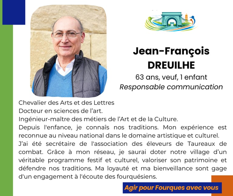 Ils ont choisi de s'engager #2 Parce que Fourques mérite une équipe compétente, engagée et à l'écoute Chaque jour, découvrez celles et ceux qui portent notre projet. Des femmes et des hommes de terrain, prêts à s'investir pleinement pour l'avenir du village. FOURQUES ENSEMBLE, AGIR POUR FOURQUES AVEC VOUS